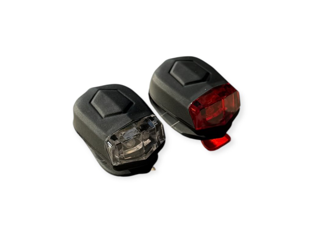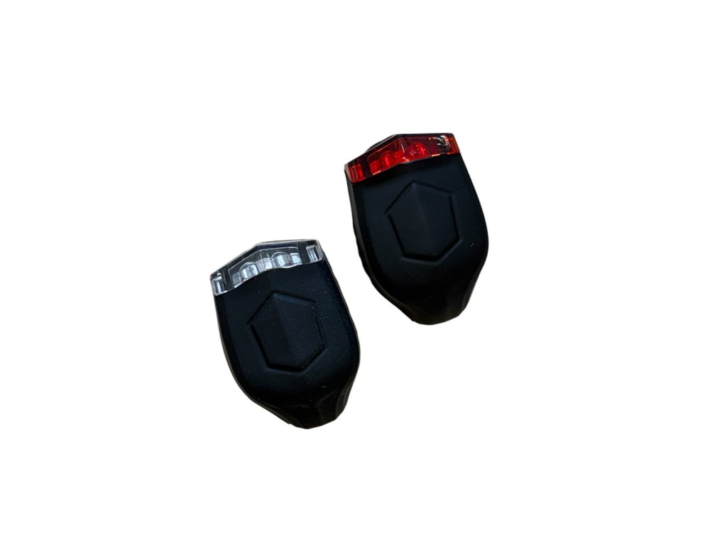 Sada vodeodolného silikónového predného a zadného svetla s dvoma vysokosvietivými LED diódami. Vhodné na všetky typy bicyklov.