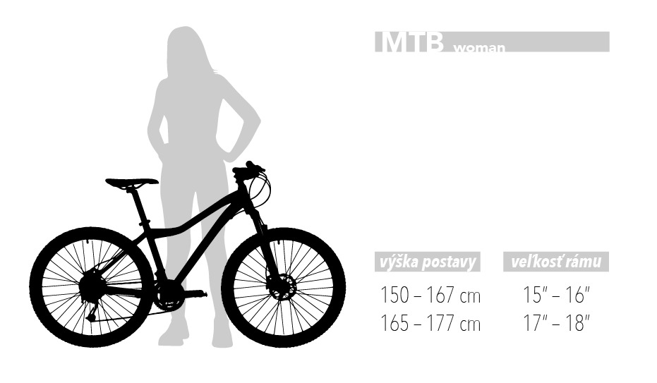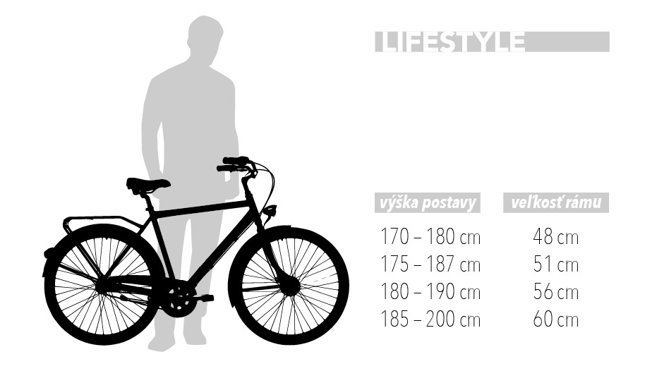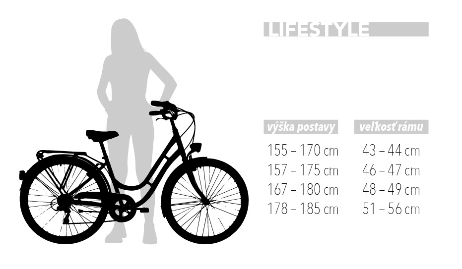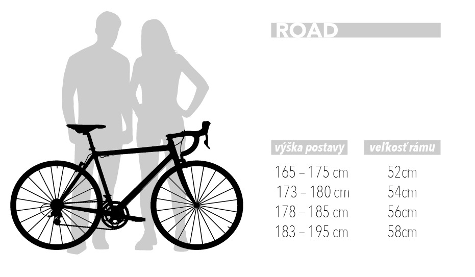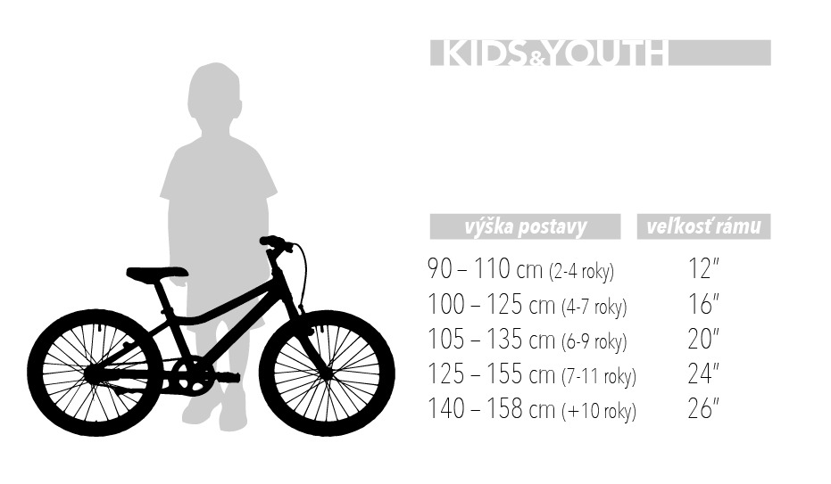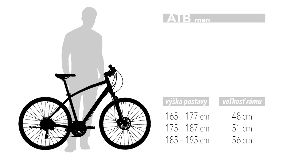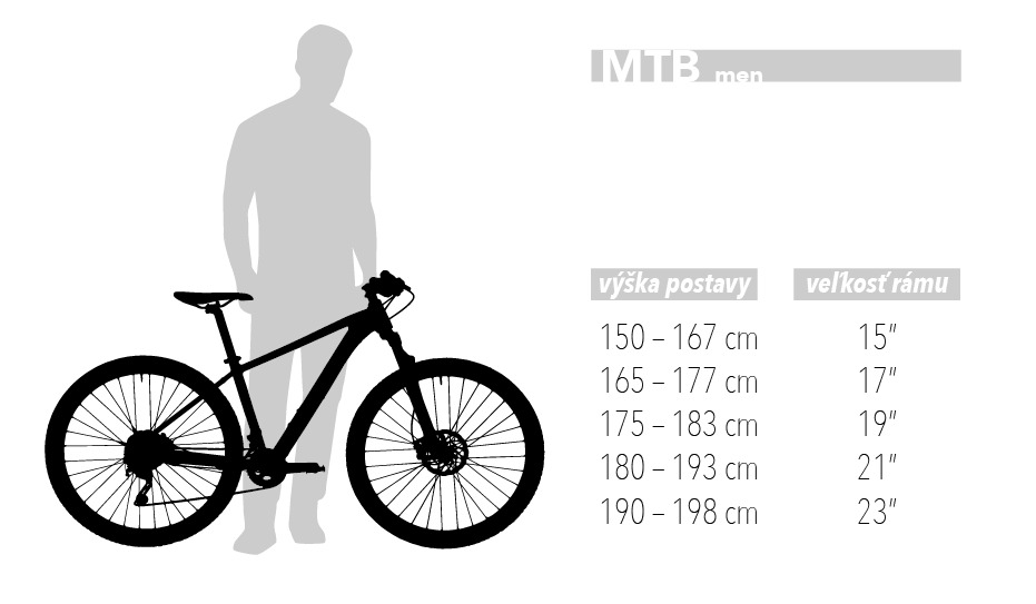 Výšky vychádzajú z min-max sedlovej trubky dlhej 30-35cm. Veľkostná tabuľka je len orientačná a nevyrovná sa testovacej jazde u Vášho predajcu.